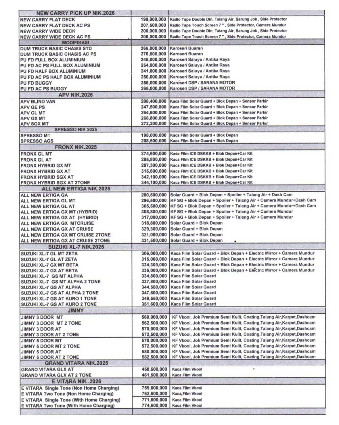 Melayani penjualan mobil secara Cash dan Credit untuk All-Type Mobil Suzuki. Pengajuan secara kredit dapat melalui Mitra Finance kami tentunya dengan Down Payment Rendah dan Angsuran Terjangkau. Harga yang tertera belum masuk promo diskon atau cashback yang tersedia, dan harga tersebut dapat berubah kapan saja.